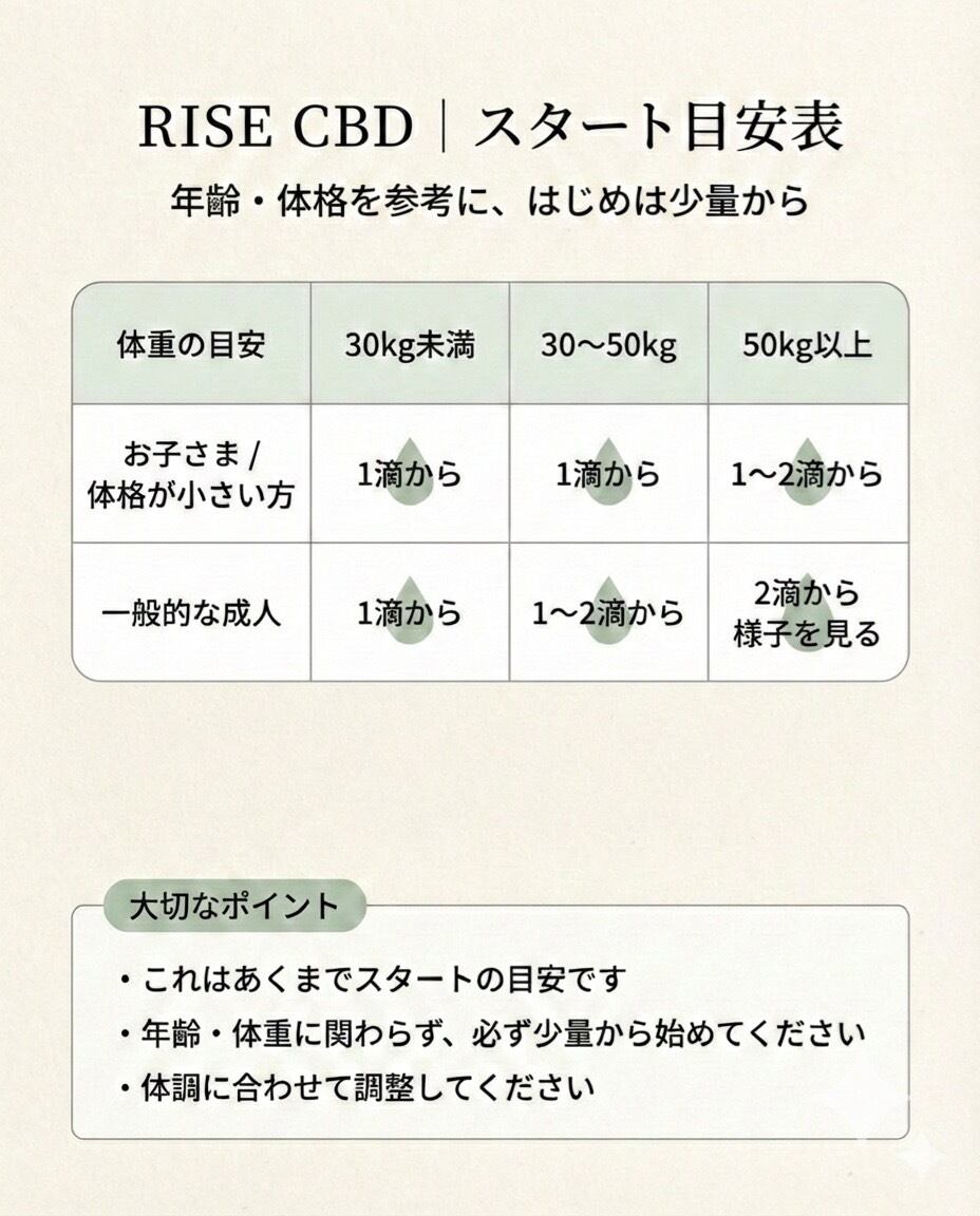 スイス産の高品質なCBDと、国内産のベースオイル(太白ごま油・ひまわり油)だけで作った純度の高い一滴です。